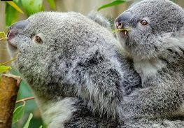 A koala bear and baby find leaves to nibble on | Mathias Appel |