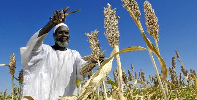 A farmer in northern Africa harvests sorghum produced from seeds donated by the Food and Agriculture Organisation through the Improving Seeds project |