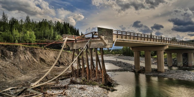 A bridge washed away by devastating floods in Alberta in 2013 |