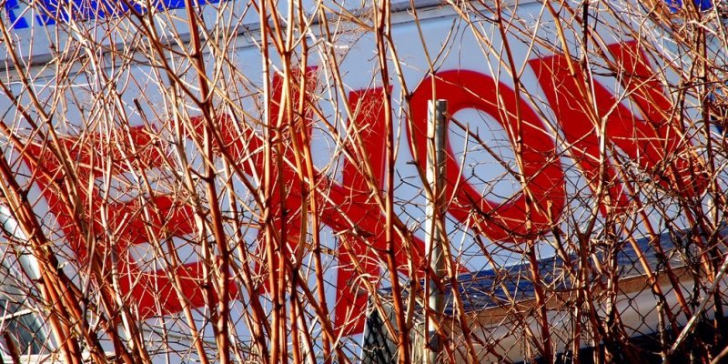An Exxon sign among weeds in a junkyard in Maryland |