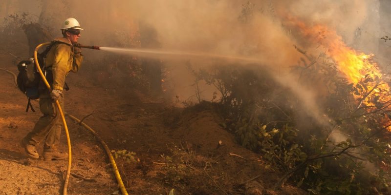 A firefighter tackles a blaze in California’s Klamath National Forest |