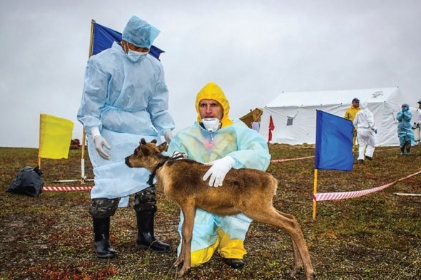 Veterinarians perform a health checkup on a young deer in Siberia after an anthrax outbreak |