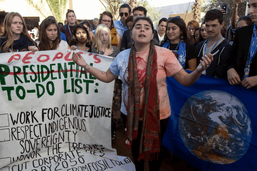 US students protest outside the UN climate summit in Marrakech |
