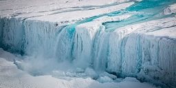 A 130-metre-wide waterfall drains meltwater from the Nansen Ice Shelf into the ocean | Stuart Rankin |