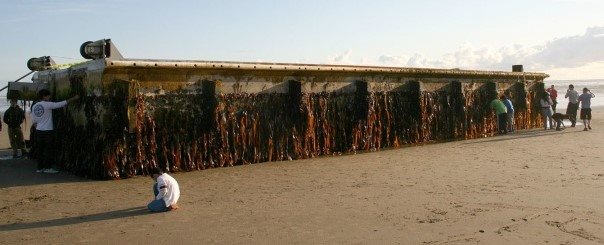 Tsunami debris included this section of a Japanese dock, which washed up on the shores of Oregon.