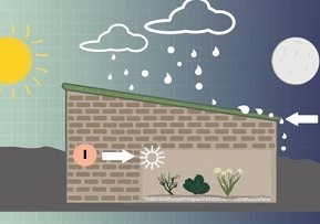 i) Bricks absorb and conduct heat from the sun, creating warm and humid conditions all year round ii) Walipinis are built to defend crops from the elements; including hail storms, flash floods, and burning heat