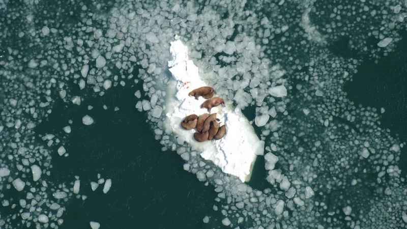 Walrus rest while hunting ... but at 2deg the Arctic is "very likely" to be ice-free one year in 10 |