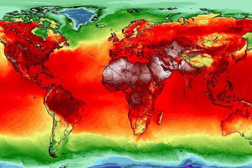 A global heat map shows how temperatures are soaring across the planet during the summer of 2018 |