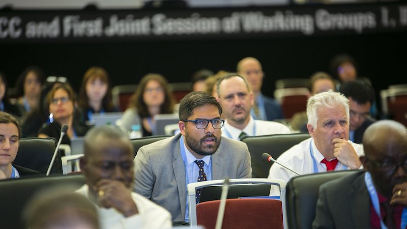 US state department officials Farhan Akhtar and Trigg Talley at the opening plenary of the IPCC meeting in Incheon