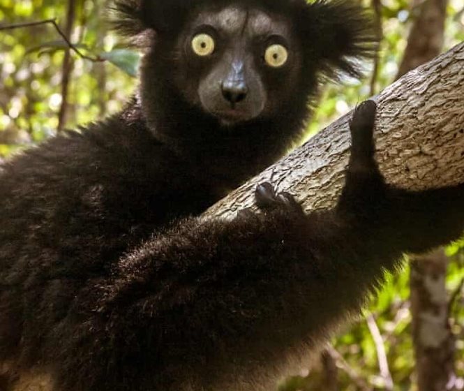 The secretive indri of Madagascar, the largest living lemur. It is critically endangered. |