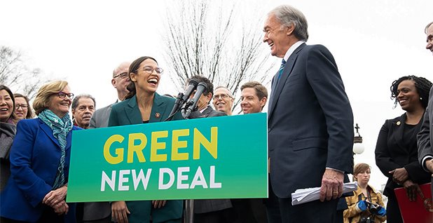 Alexandria Ocasio-Cortez and Senator Ed Markey introducing the Green New Deal resolution