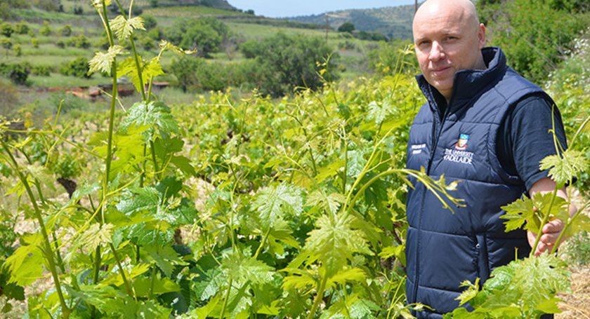 University of Adelaide researcher Alex Copper with Xynisteri vines in Cyprus |