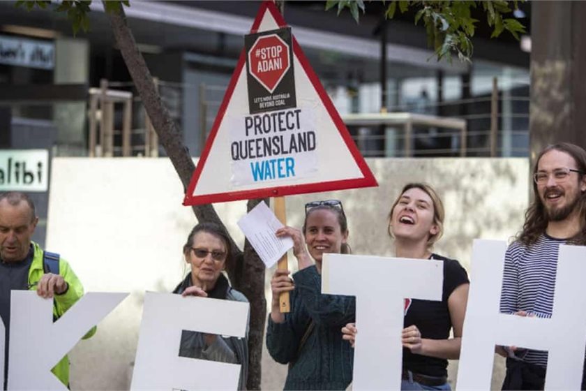 Stop Adani community group members hold a rally in Brisbane against the Carmichael coalmine.