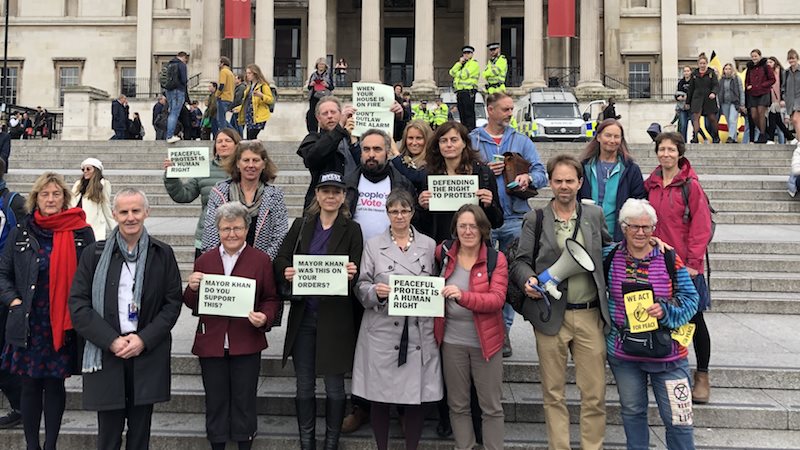 Green and Labour politicians gather in Trafalgar Square in protest at the ban