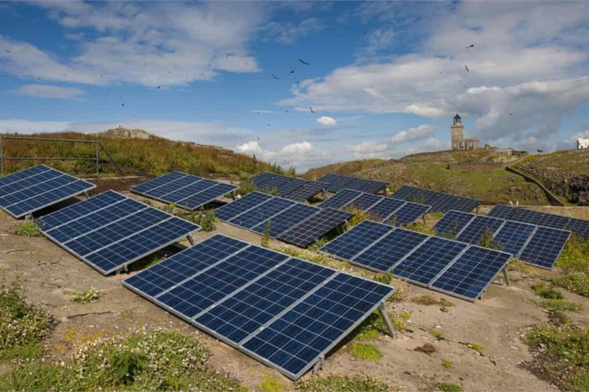 Solar panels on the Isle of May, Scotland. Solar power is expected to be the biggest driver in renewables growth