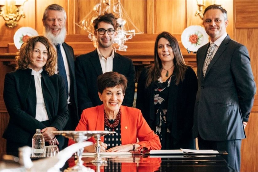 Generation Zero founders Lisa McLaren and James Young-Drew watched Governor General Dame Patsy Reddy sign the Climate Change Response (Zero-Carbon) Amendment Act into law yesterday.