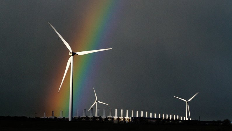 Rainbow over the Oosterschelde barrier, the Netherlands