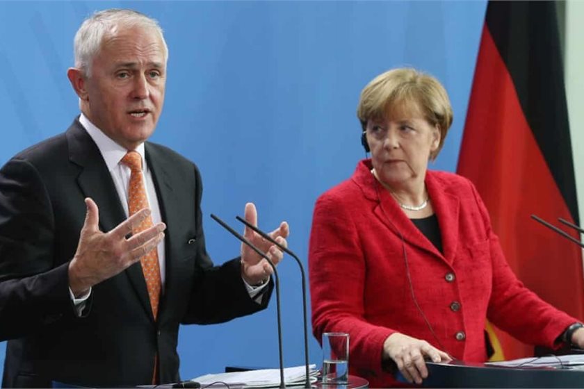 FLASHBACK … prime minster Malcom Turnbull and German leader Angela Merkel agreed in 2017 to collaborate on a transition to a low-emissions economy