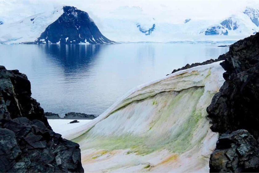 WARMING temperatures in Antarctica are helping the formation and spread of “green snow” that in places can be seen from space.