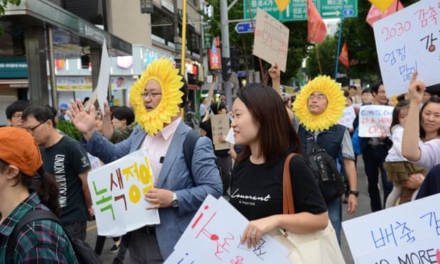 Soyoung Lee at a climate protest in September. Photograph: Office of Lee Soyoung |
