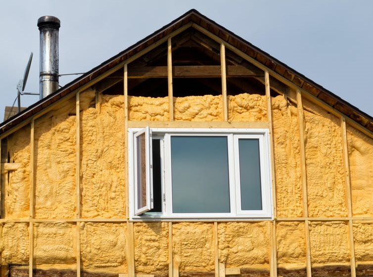 Insulating foam is injected between walls to prevent heat escaping from the home, reducing energy use