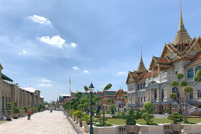 The Bangkok Grand Palace that is usually teeming with tourists was almost deserted in June 2020, during the covid-19 pandemic.