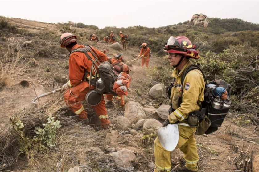 Firefighting prisoners clear a fire line in California in 2017. Photo: USAF Master Sgt. Brian Ferguson, Wikimedia Commons |