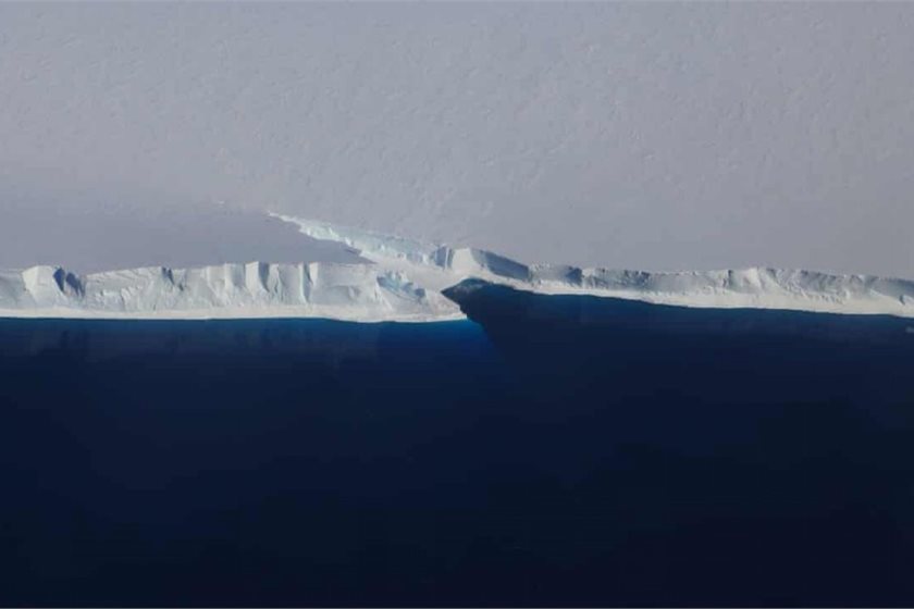 Fracture at the front of Ross ice shelf, the largest in Antarctica. A platform of ice nearly four times the size of the UK is at risk of collapse. Photograph: Martin Wearing/PA