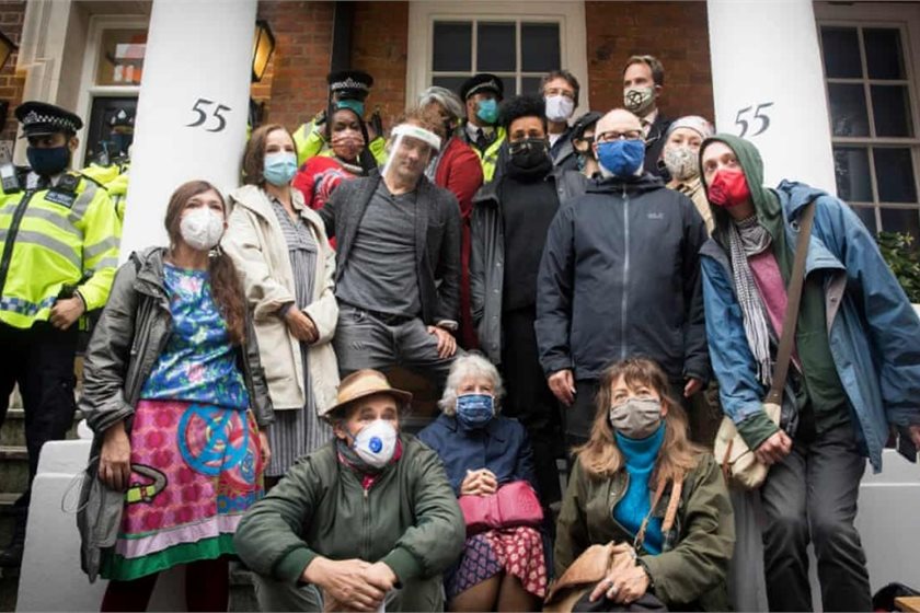 Writers Rebel outside 55 Tufton Street. Among those pictured are George Monbiot, Josh Appignanesi, Zadie Smith, Toby Litt, Sir Mark Rylance and Jay Griffiths. |