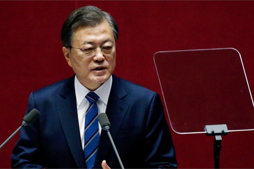 South Korean President Moon Jae-in speaks at the National Assembly in Seoul on Wednesday |