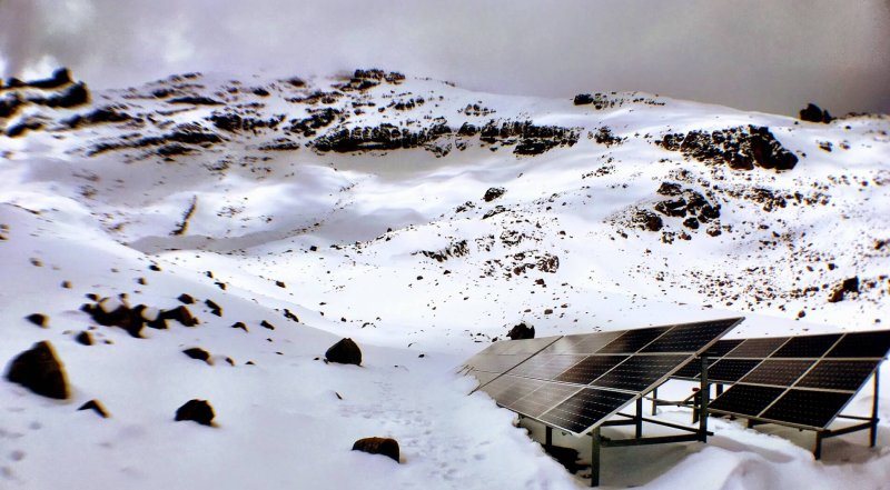 Hoping for the best? No, just ultra-efficient use of solar panels in the snow.