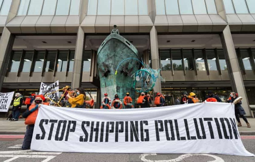 Activists from Ocean Rebellion protest outside the UN International Maritime Organization’s headquarters in London in October 2020. Photo: Barcroft Media/Getty Images