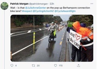 GREEN MP Julie Anne Genter was spotted cycling Wellington's newest - and possibly shortest-lived - bike lane yesterday.