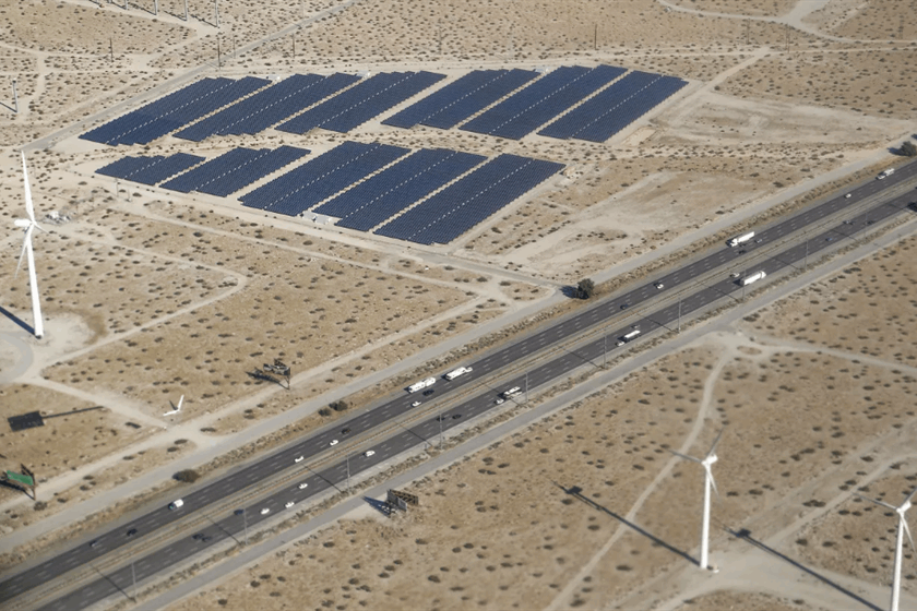 RENEWABLE electricity provided just shy of 100% of California's electricity demand on Saturday, a record-breaker, officials said, much of it from large amounts of solar power now produced along Interstate 10, an hour east of the Coachella Valley.