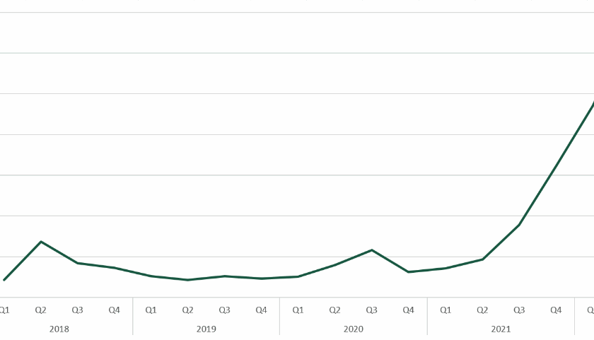 APPLICATIONS to register post-1989 forest grew by more than 400% from 296 in the last quarter of 2021 to 1304 in the first quarter of 2022.