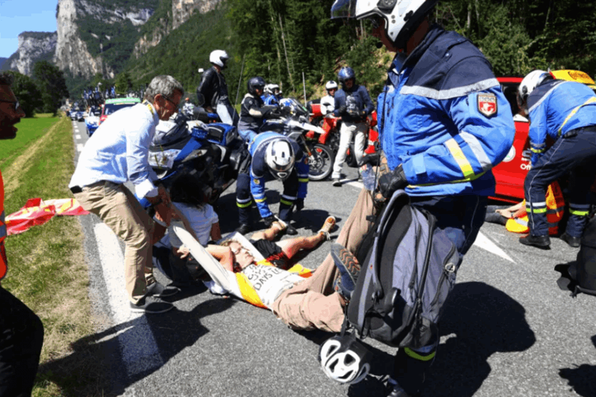 Alberto Bettiol (EF Education-EasyPost) had attacked the 25-rider breakaway that had gained over seven minutes on the group of race leader Tadej Pogačar (UAE Team Emirates) and had a lead of 32 seconds when the race motorbike drew alongside to warn him the race would have to stop.