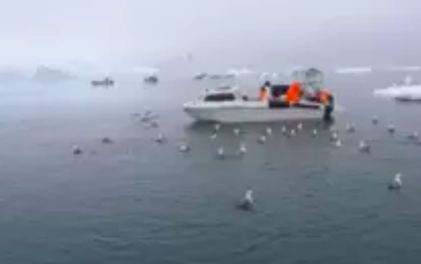 Icebergs bigger than city blocks loom through the mist as Kaleeraq Mathaeussen reels in halibut from the frigid waters one by one.