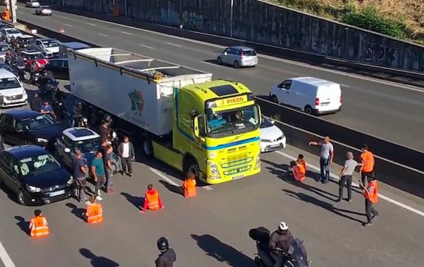 Every few days, a handful of activists walk onto a highway or busy street somewhere in France and sit down, blocking traffic, facing insults from the angry drivers being held up.