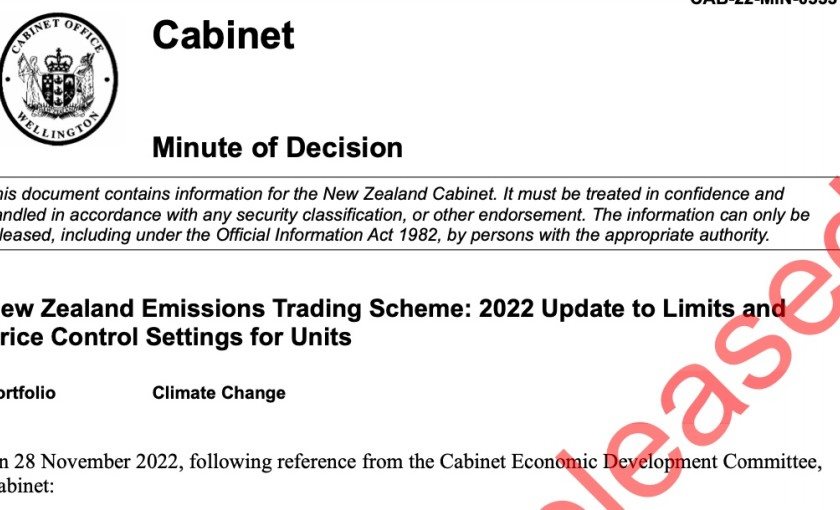 Cabinet has ignored a Climate Change Commission recommendation to significantly increase the trigger price of the cost containment reserve and failed to reduce the number of credits available at auction by as much as the commission proposed.