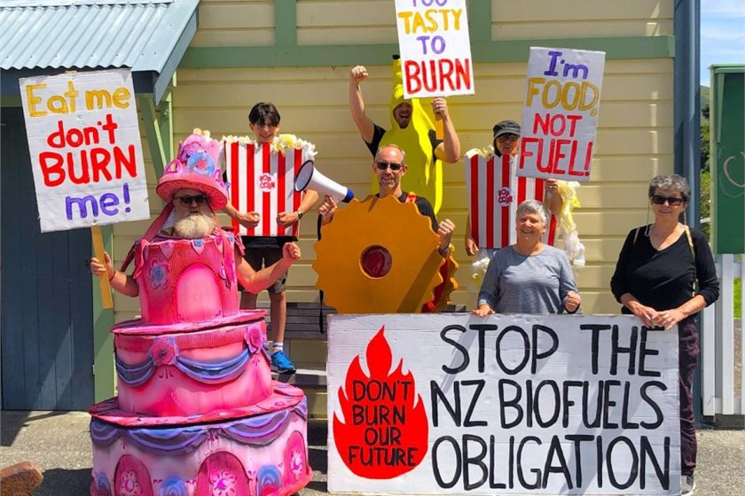 | Above: Don't Burn Our Future supporters dressed as "angry foods" to present a petition opposing the Sustainable Biofuels Obligation to the government in December last year. |