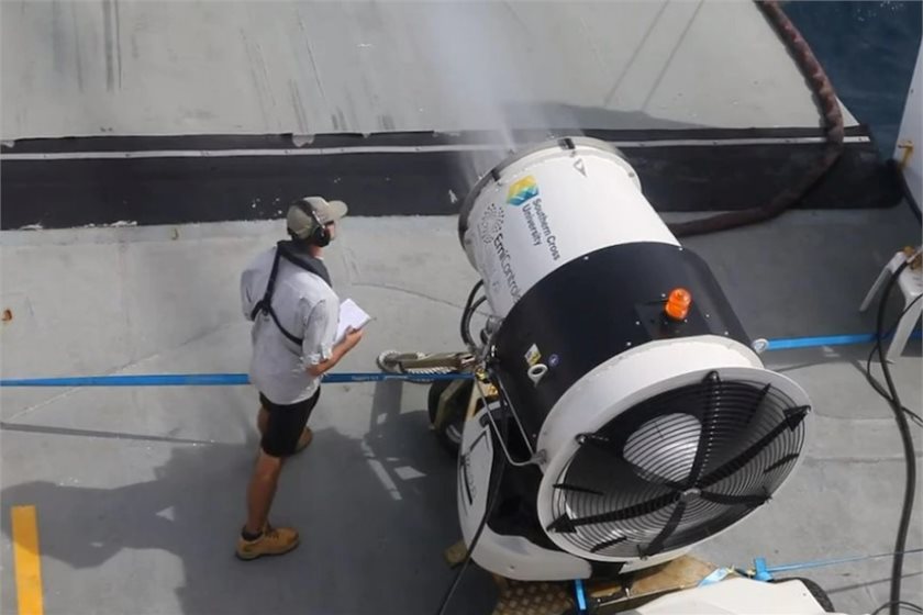 | The technique uses a device like a snow canon to shoot salt water into clouds. PHOTO: Brendan Kelaher, Southern Cross University). |