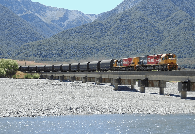 A Kiwirail train carries coal across the Waimakariri River. IMAGE: Wikipedia |