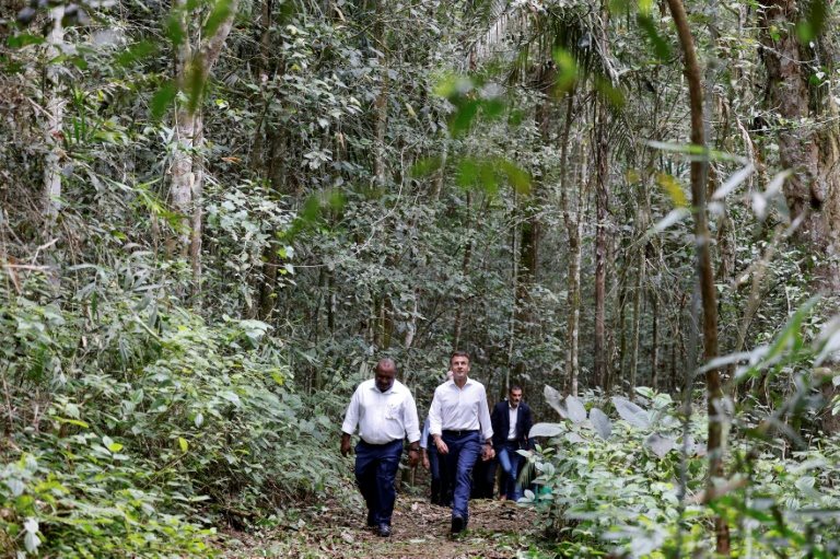 France's President Emmanuel Macron stripped off his suit jacket to wander the wild forests of Papua New Guinea on a green-tinted charm offensive in the South Pacific.