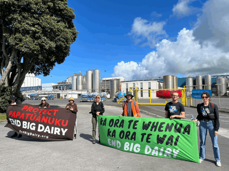 Climate activists blockaded three targets simultaneously on Sunday - the Whareroa Fonterra Dairy factory, the Kapuni Ballance fertiliser factory, and Todd Energy’s gas plant.