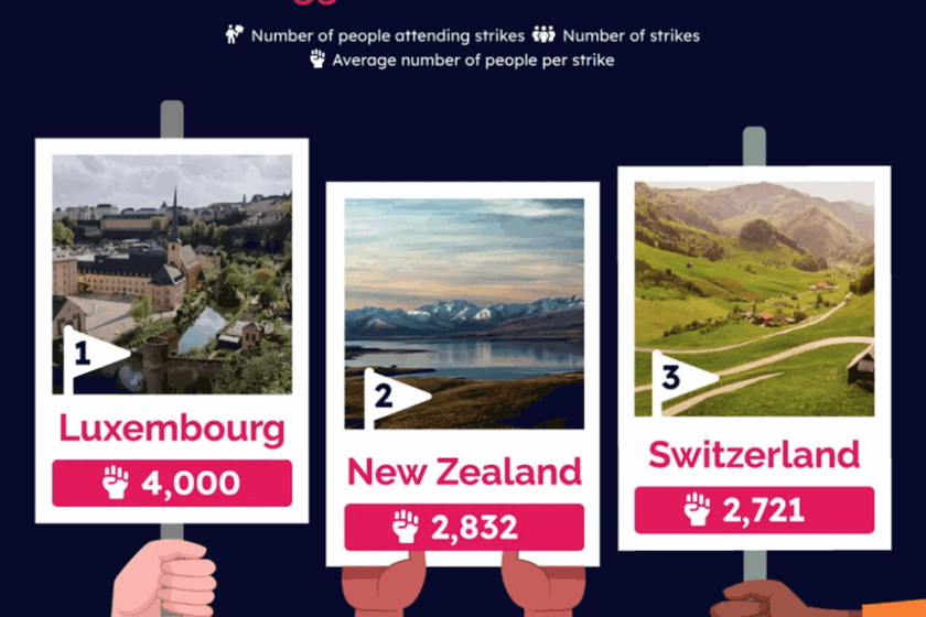New Zealand also made the top three globally for its number of strikers compared to the general population.
