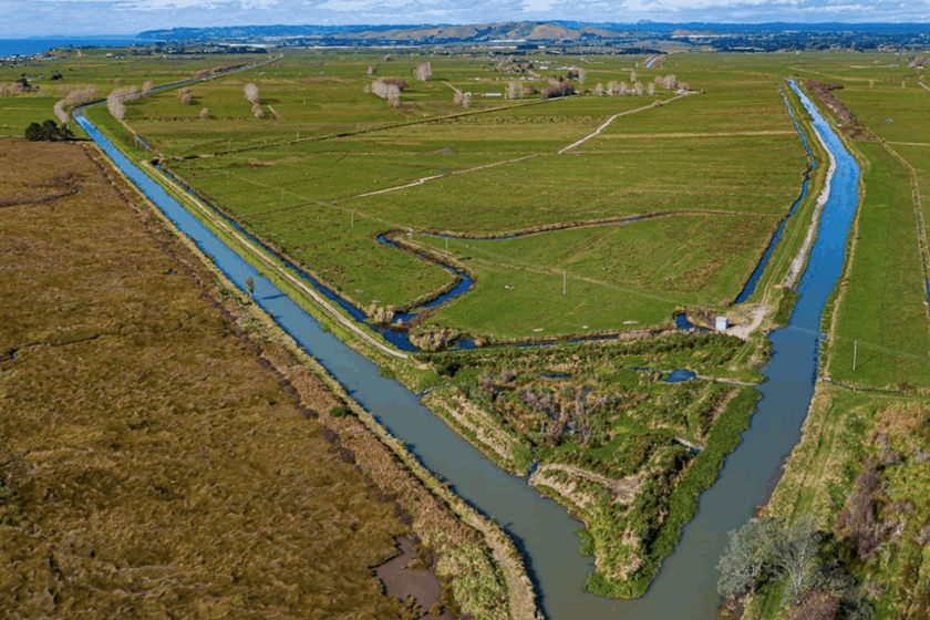 | Arial view of potential wetland site near Waihi Estuary. PHOTO: Andy Belcher |