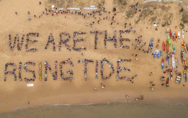 “A really good recent example of this is the blocking of the Newcastle coal lane, in Australia, by hundreds of activists paddling on kayaks and paddle boards to block the world’s largest coal port.”
