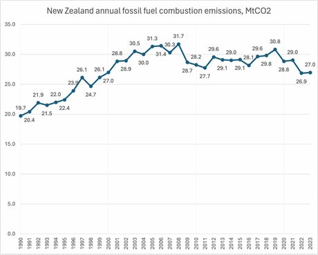 Three years ago I asked, “Why did New Zealand’s CO2 emissions blow out so spectacularly in 2019?“. At that point, emissions had risen 10% in three years. My conclusion was that: