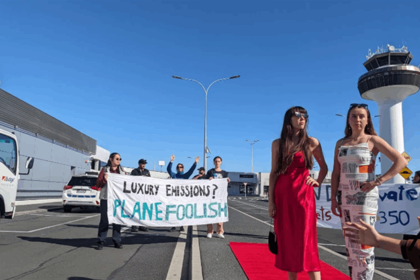 | Climate activists say that the era of private planes is coming to an end. PHOTO: Shanti Mathias via The Spinoff. |