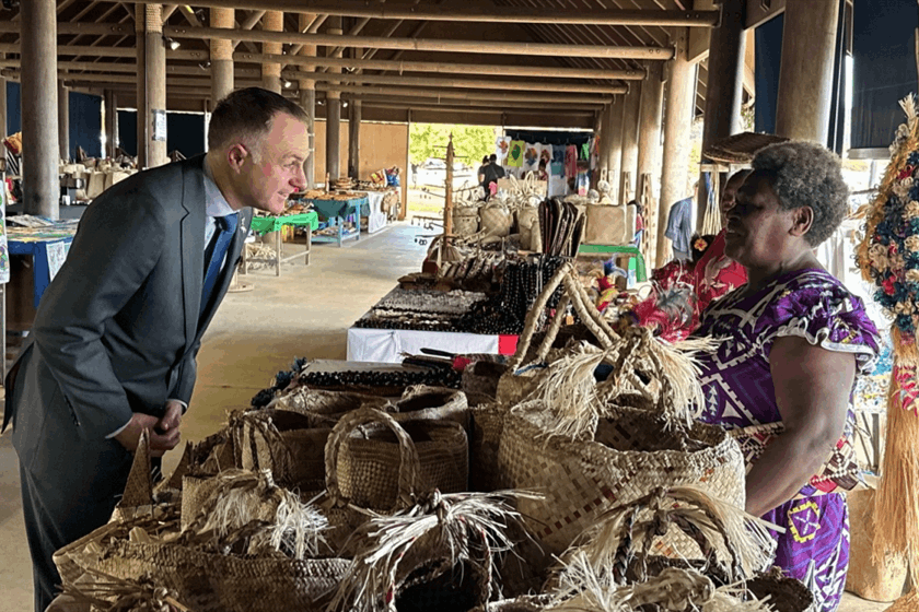 | Climate change minister Simon Watts on a recent visit to the Pacific |